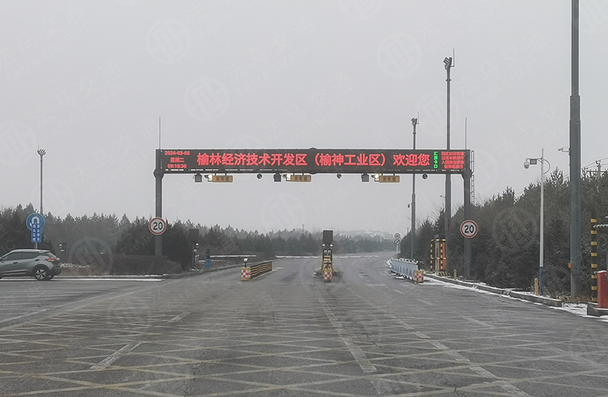 法馬交通陜西榆林清水工業(yè)園區(qū)項(xiàng)目LED屏龍門架案例
