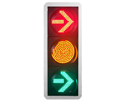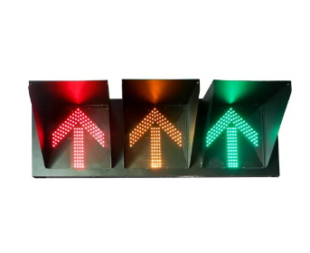 由紅色、黃色、綠色3個幾何位置分立的內(nèi)有同向箭頭圖案的圓形單元組成,用于指揮某一方向機(jī)動車通行。箭頭方向向左、向上、向右和掉頭分別代表左轉(zhuǎn)、直行、右轉(zhuǎn)和掉頭。