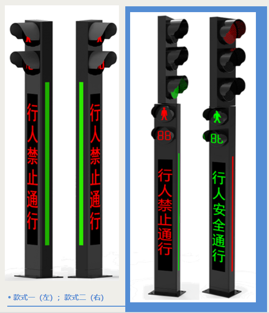 人行交通一直是城市道路交通的重要組成部分。傳統(tǒng)人行信號(hào)燈采用單立桿支撐,只具備交通信號(hào)指示功能,因此存在功能簡(jiǎn)單、不便視認(rèn)、缺乏提示、外觀簡(jiǎn)陋等缺陷。隨著智慧城市、文明城市、創(chuàng)城項(xiàng)目的大力推進(jìn),交通參與者、管理者都對(duì)傳統(tǒng)的交通設(shè)施提出了更高的要求。例如:城市景觀的融入、信息發(fā)布手段的拓展、交通安全的提升、特殊人群的社會(huì)傾向等,故多數(shù)城市人行燈的設(shè)置形式也正逐步向一體式過渡。