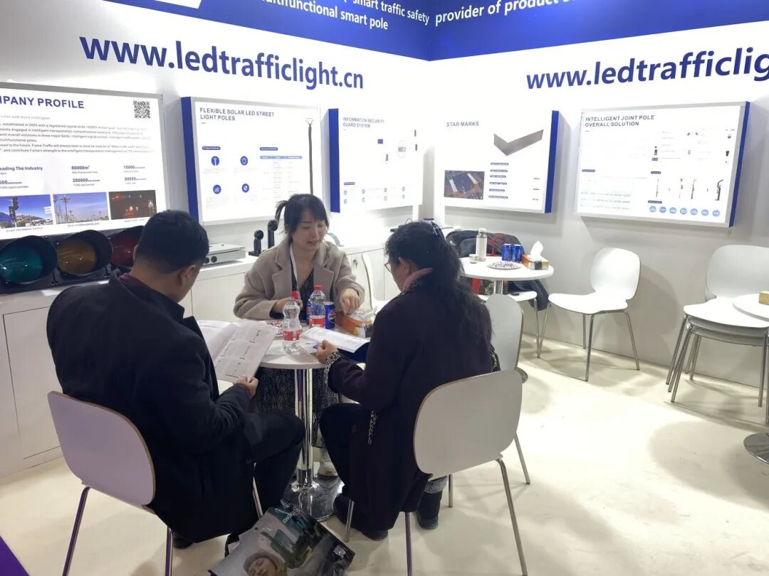 此外,我們還展示了多款備受矚目的產(chǎn)品,包括智慧合桿、柔性太陽能路燈、48路集中協(xié)調(diào)式信號機(jī)、13路無線信號機(jī)、12路聯(lián)網(wǎng)過街一體式信號機(jī)、200mm大功率紅黃綠滿盤信號燈、300mm大功率紅黃綠箭頭信號燈、300mm紅滿盤+黃滿盤含紅綠雙色雙位倒計時+綠滿盤三單元信號燈,以及300mm大功率紅人靜綠人二單元信號燈等。