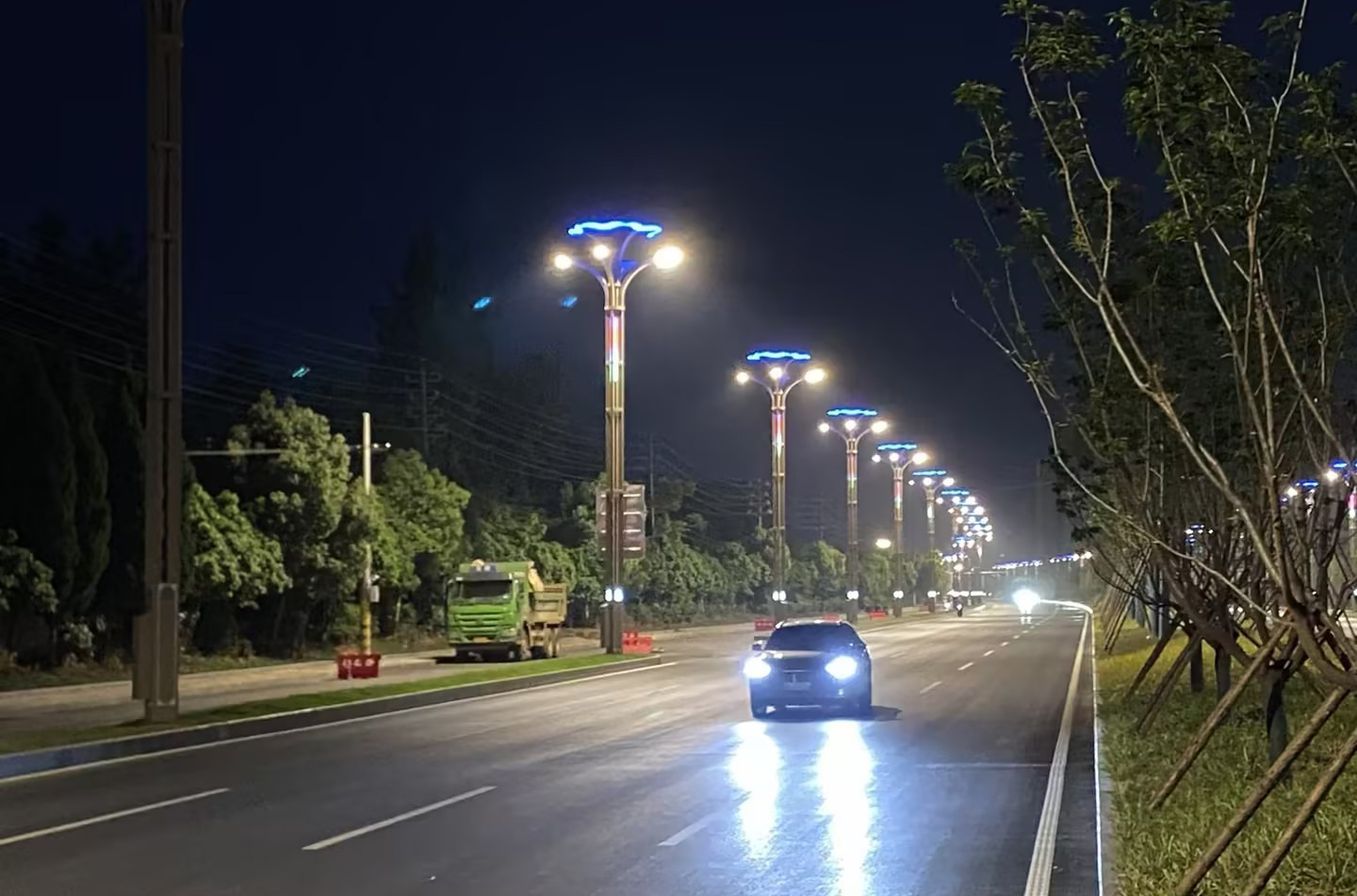 在鄂州葛店,法馬交通的蔥郁智慧燈桿項目已經(jīng)正式投入使用。這一項目規(guī)模龐大,共安裝了461套燈桿。
