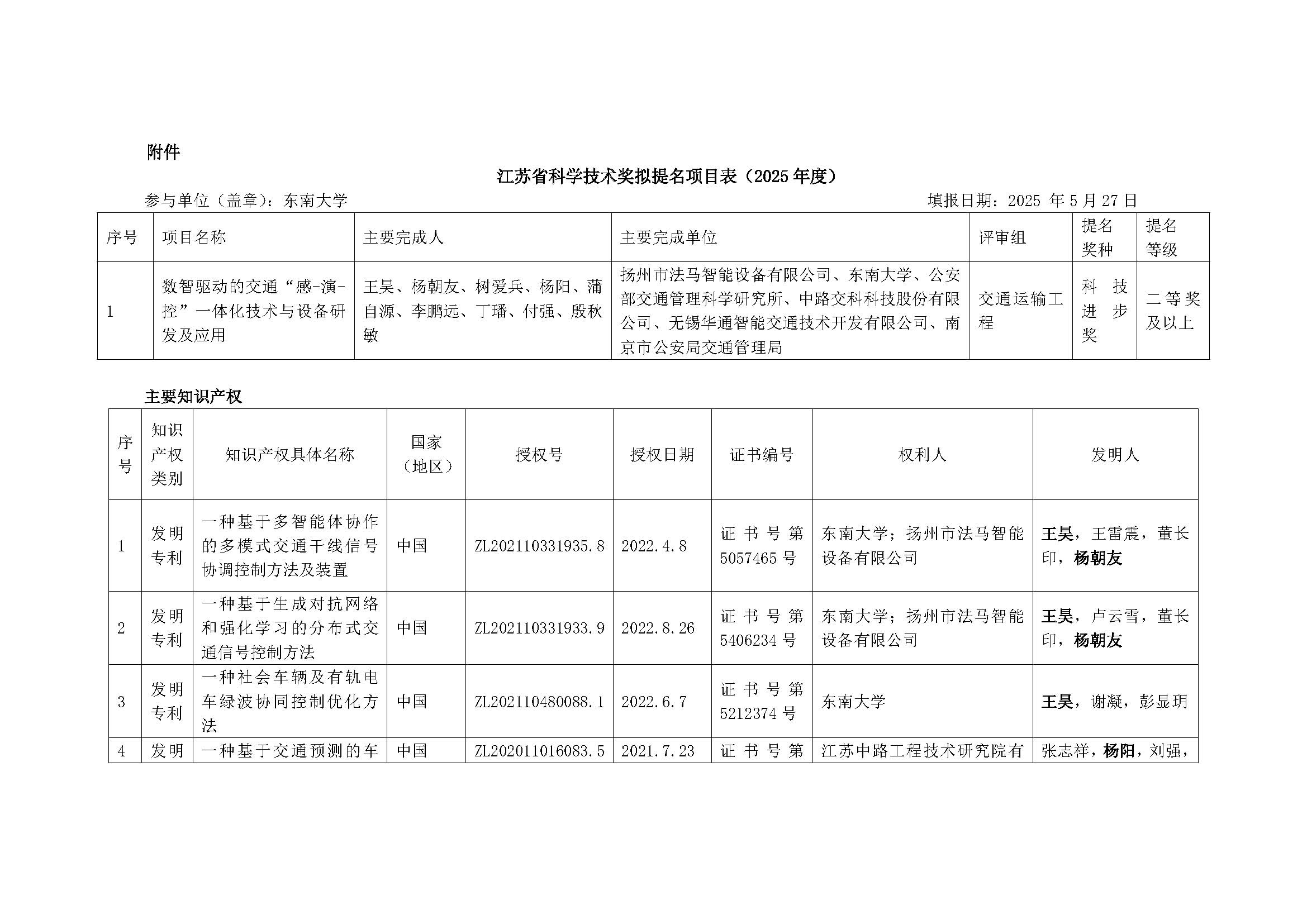 根據(jù)《江蘇省科學(xué)技術(shù)獎勵辦法》、《省科技廳關(guān)于2025年度江蘇省科學(xué)技術(shù)獎提名工作的通知》(蘇科資發(fā)〔2025〕90號)等有關(guān)文件的要求,現(xiàn)將我單位擬參報的2025年度江蘇省科技進步獎項目《數(shù)智驅(qū)動的交通“感-演-控”一體化技術(shù)與設(shè)備研發(fā)及應(yīng)用》項目進行公示,公示內(nèi)容見附件。若對項目有異議的,可以書面形式提出。