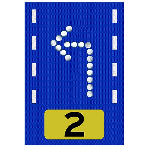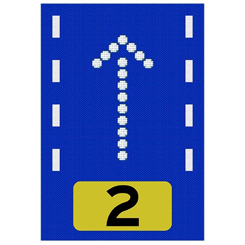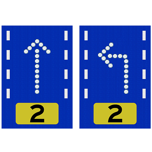 車道指示標志用于發(fā)布進口車道的左轉(zhuǎn)、直行、右轉(zhuǎn)、調(diào)頭等指示信息,